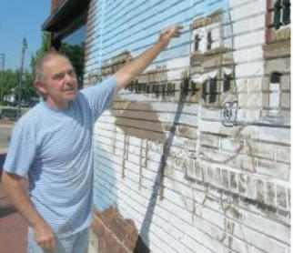 I was asked If I could paint something that would glorify Christ in Marlette Michigan. this is on the south side of a building at the corner of Van Dyke 1 block south of the light in downtown Marlette, I started by painting the face of Jesus with halo around head t topf building and left it atand for a week to get public reactions which were all good , the rest of the mural is historical of Marlette in 1909 , Jesus is see through about 15 ft. tall .There is a lake in the mural which is no longer there because a 4 year old child drowned and they filled in the lake and diverted the river that fed it. Peggy helped me when she could this was 60 miles from home . the owner of the building payed for the paint and 5 gallons of gas every day I went , I did not charge for the glory of God